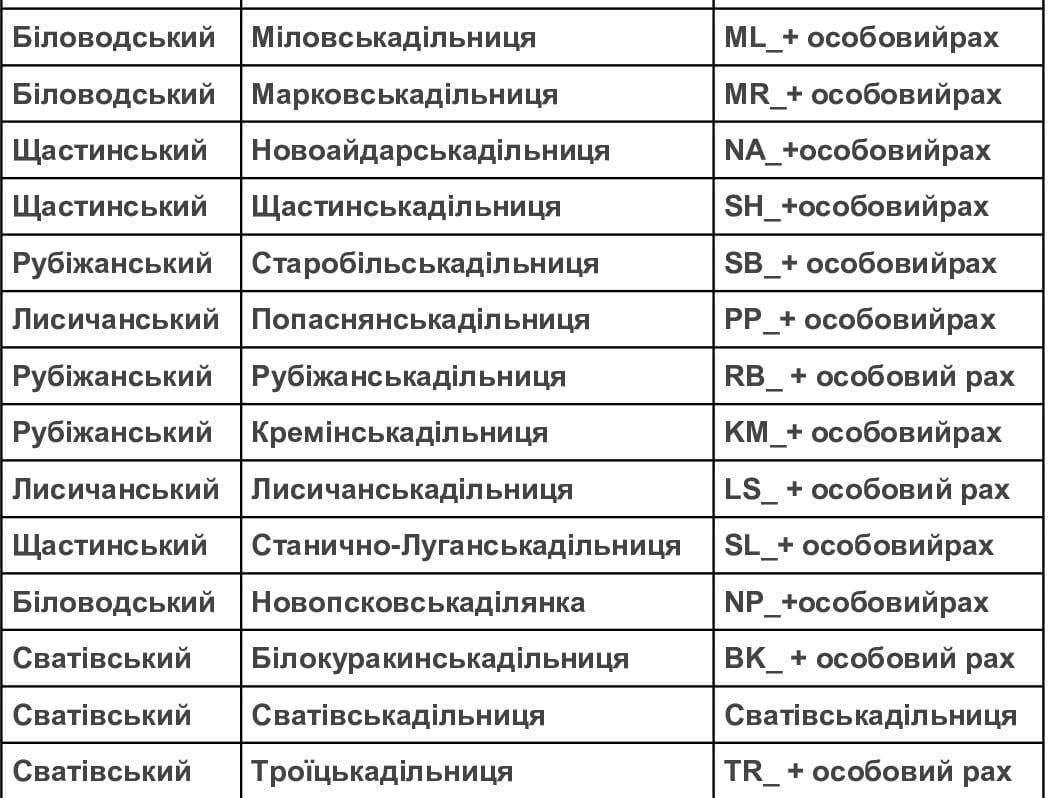 В результаті реорганізації в назву особистого рахунку споживачів електроенергії додали префікс відповідний кожній дільниці (зазначено в таблиці).