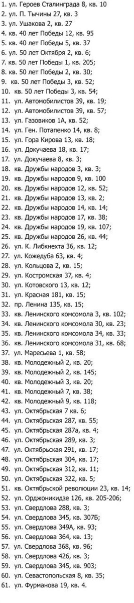 До переліку квартир, що "віджиматимуть" першими, входять понад 60 адрес: