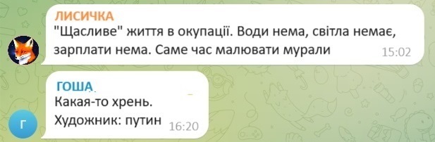 Замість відновлення інфраструктури, водо- та електропостачання, російські посіпаки прикрашають місто триколорами та фарбують пам’ятники. Тож, “саме час малювати мурали”, - подають в місцевих пабліках.