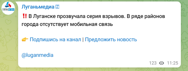 Водночас, інтернет-ресурс, підконтрольний т.зв. "ЛНР", оприлюднив інформацію, що через серію вибухів у Луганську низка районів міста залишилася без мобільного зв’язку.