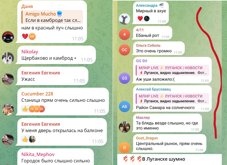 6 червня близько 23:00 жителі окупованого Луганська почали писати в соцмережах про те, що в місті “дуже гучно” через прильоти.